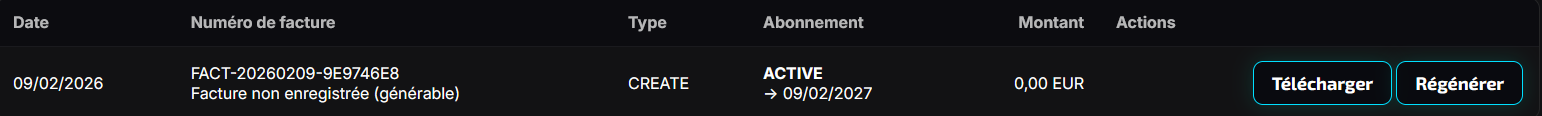 La page Mes factures vous permet de consulter vos factures et, selon le cas, de les télécharger.