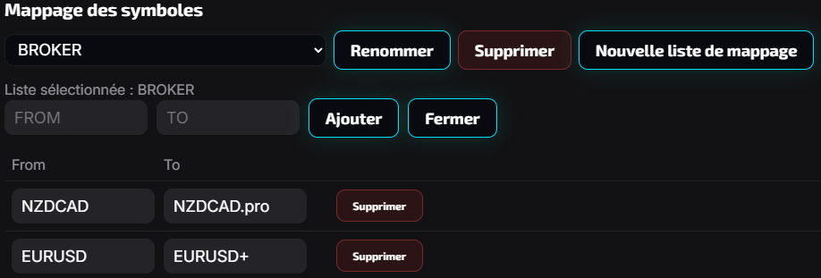 Le mappage des symboles sert lorsque le symbole utilisé dans TradingView n'est pas exactement le même que chez votre broker.