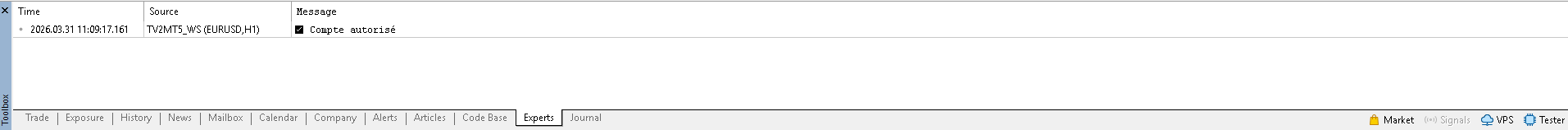 Ouvrez l'onglet Experts dans MetaTrader 5. Vous devez voir des messages indiquant que la connexion et l'authentification ont réussi.