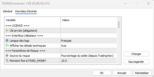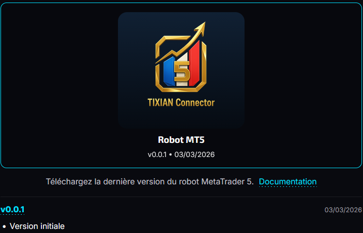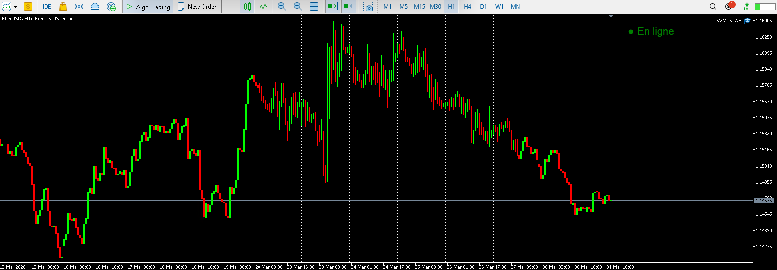 N.B. : Le graphique doit rester ouvert. Si MT5 ou le graphique est fermé, le robot ne recevra plus les signaux.