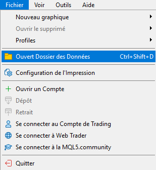 - Cliquez sur Fichier, puis sur Ouvrir le dossier des données