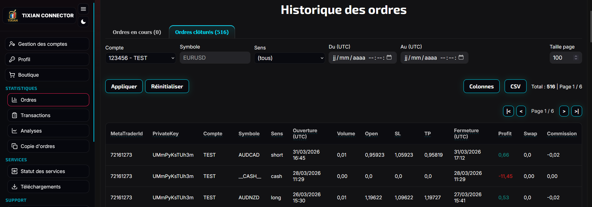 The page Orders lets you see orders received by the system.